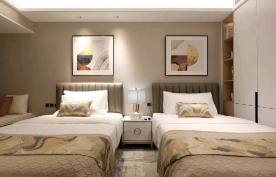 融创世界很近的公寓酒店,舒服干净。就是路边有工地,不过晚上会停工,也还安静