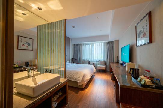 1.8的大床房,空间安排合理,服务好,楼下餐厅饭好吃,距离地铁近出行方便
