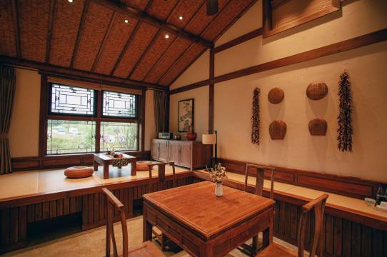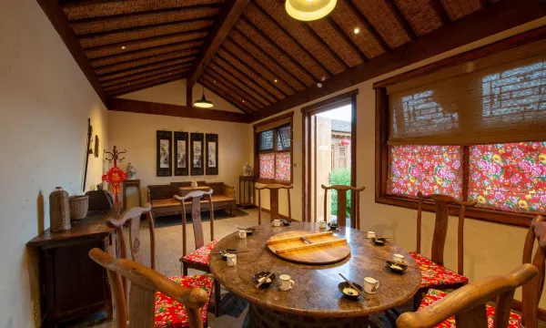 客栈拥有干净整洁的客房,1间餐厅、1间酒吧及1套复原院落。客房力求真实复原长白山地区民宿风格,大红灯笼、花格窗棱、万字火炕,一件件古老而又充满关东生活气息的艺术文化摆件,极具原乡韵味。独立的木质庭院,描绘出低调朴实的东北民居韵味。现代化的生活设施,细致周到的服务品质,现代与传统交错之感,别有一番趣味。