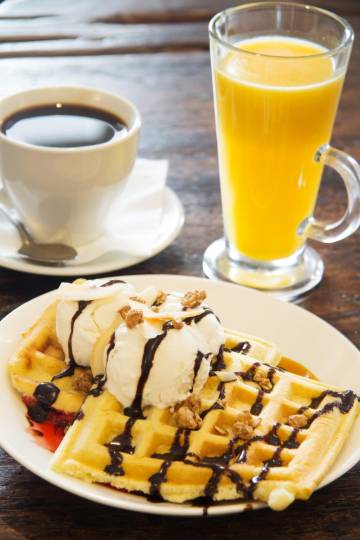 您可以到杂货店/便利店随便找点吃的;或者待在房间里,享受酒店的客房送餐服务。