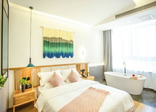房间整体还是不错的,入住比较满意。前台服务态度也很热情,附近吃饭特别方便。购物等等不是很方便,下次还会继续预定。