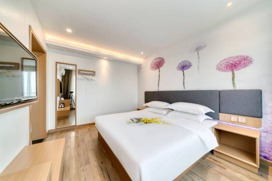 房间宽敞明亮,床也很柔软,晚上睡的很舒服。前台小姐姐很热情,下雨了主动给我提供了雨伞,服务贴心,非常满意