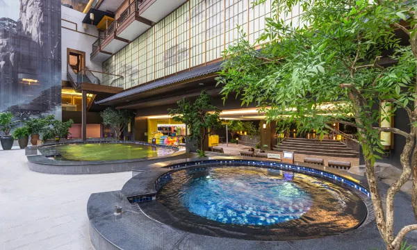 客房部有百余间不同风格的商务温泉客房,房间安静优雅,你打开窗帘仿佛走进另一个世界,可见逼真的瀑布,欣赏鸟儿欢唱。