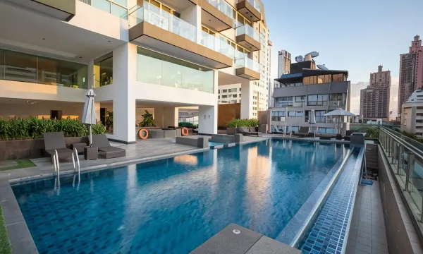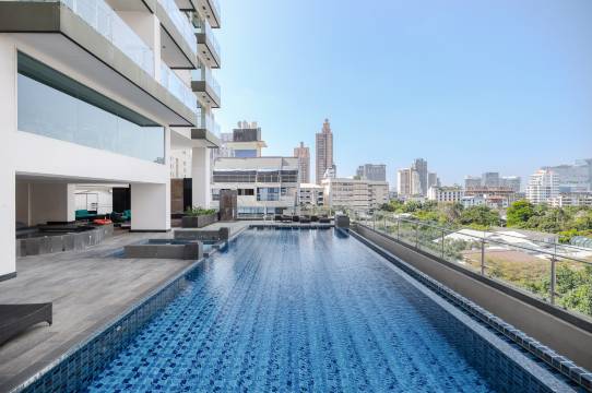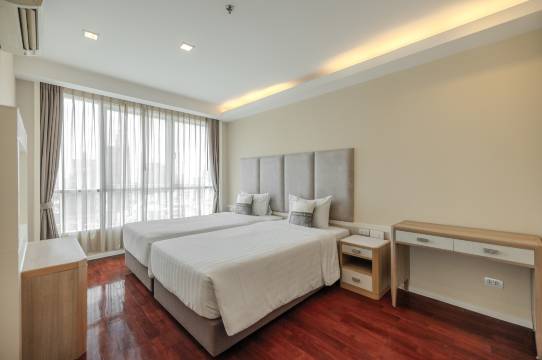 两房单位空间十分宽敞,全家住得开心,亦可额外加床,收费相宜。高层单位,视野开阳阳光充足。泳池gym桑拿一应俱全,使用时亦唔系太拥挤,十分好!步行到emsphere购物饮食十分方便,沿途路过十几二十间按摩店,选择众多。远少少亦可步行到terminal 21。