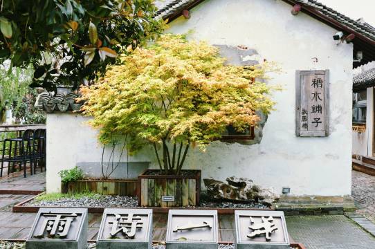 前台小姐姐黑夜来停车场接我们,对客人的要求热情回应。小镇虽小,但能在这里看书、喝茶以及发呆。小桥流水,清风徐来,青石板两旁是水乡最古朴的原貌。不远处还有半山书店,闲暇时可以来此地歇息。
