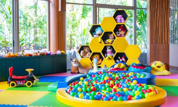 酒店非常适合孩子,水乐园很大项目也挺丰富。单买票的话一个人200块钱,酒店客人免费,还是很划算。这段时间造浪池关闭了,可惜。游玩区域很大,还有儿童俱乐部,海滩前面还有一些小的游戏设施,对面的海沙滩也不错,不是细细的白沙,稍微黄一点的沙子,但是浪不大。园区内随时有摆渡车,很方便。附近吃饭就在酒店餐厅旁边的街上,几家味道都不错。