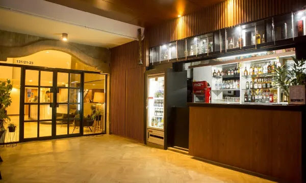 一家小酒店,位置很好,就在一条酒吧林立的繁华街道上,但因为它在街道尽头,所以晚上并不吵闹。