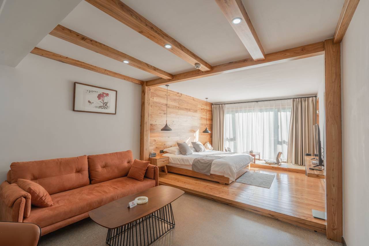 美在田园山水,乐在悦野民宿!朋友,情侣,家庭出游,公务出差、团建活动。民宿按现代简约风格装修,配以轻奢极简家具搭配,充分体现出低奢的生活品质。客房装修温馨雅致,从电动窗帘、智能马桶、中央空调、到全实木定制床/衣柜,充分提升用户的体验品质。床上用品及日耗品采用星级酒店上等品。让住客沉浸式体验尊贵的生活!