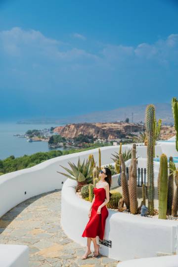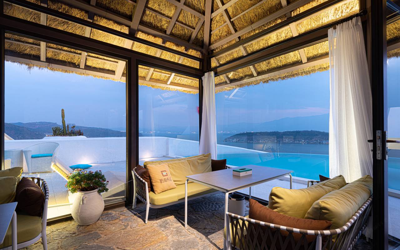 圣托里尼纯白建筑+苍山洱海全景,随手拍都是大片。楼顶无边泳池配白色钢琴,网红大秋千就在他家。傍晚看日落美到失语。