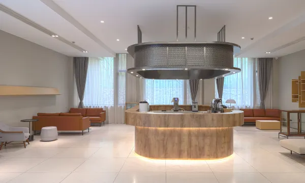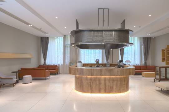 酒店以艺术为主题,与荣宝斋在线合作,邀请艺术家联合参与创作,推出艺术家客房,为年轻潮人、旅行者、文艺青年、国风、漫画爱好者营造属于自己表达的酒店房间。青年艺术家韩瑞的大型现代装置艺术作品《景》落地酒店,迎接来客。