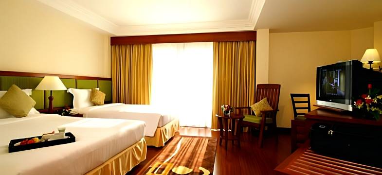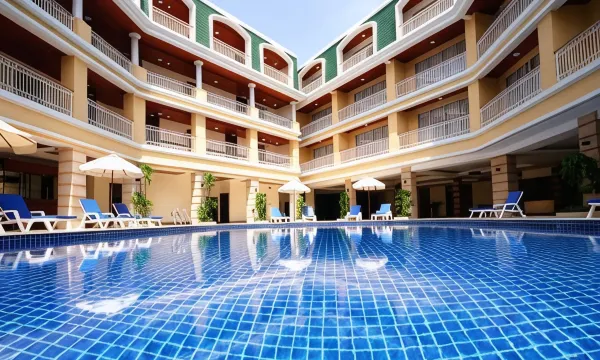 酒店房间大,早餐相对偏欧美口味,俄罗斯人比较多,相对安静,干净整洁,就是比较老了,泳池不错!距离海滩很近,走到芭东海滩大概10分钟,旁边有711,吃饭也方便!不是海景酒店!