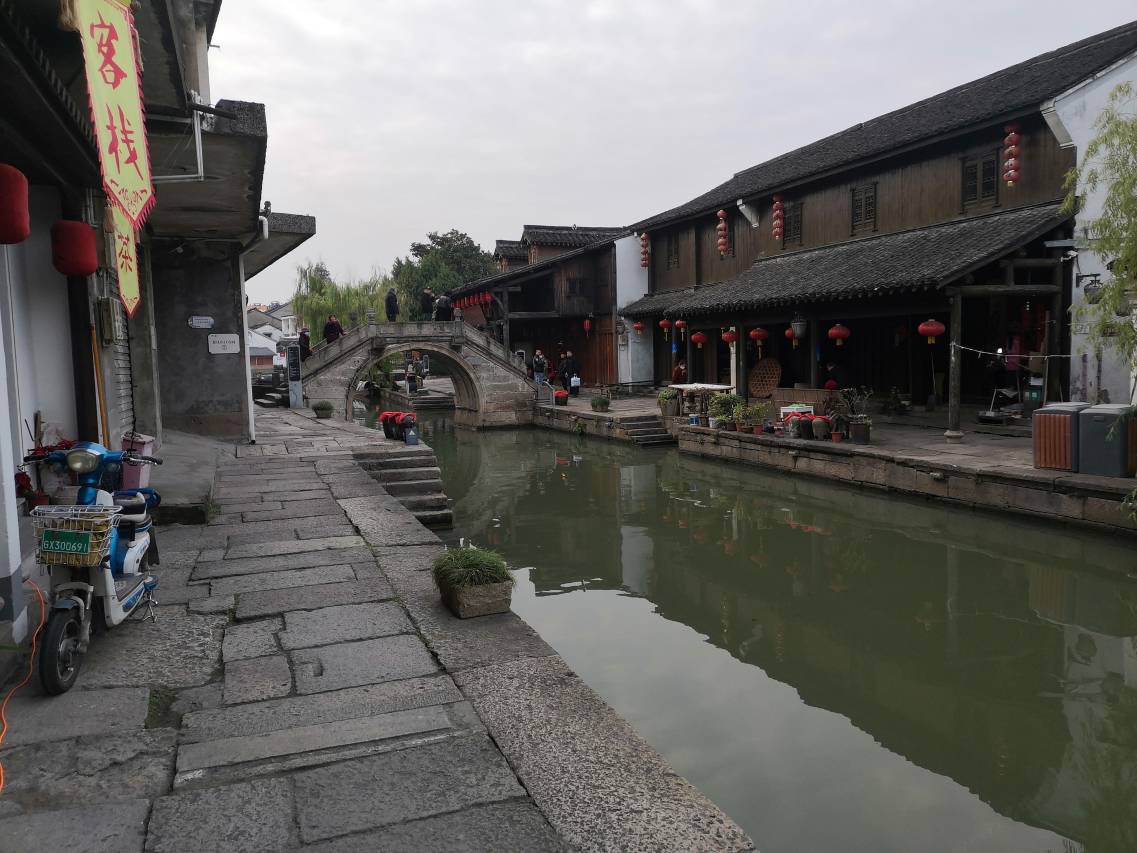 是老公妈妈的出生地,在镇上兜兜转转了二天,住在镇上唯一的客栈,名副其实的舒心,是典型的水乡老房子,开窗见河,安静舒适。