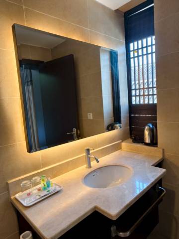 入住的微醺河景大床房也太惊喜了!房间空间宽敞通透,布置得温馨又有格调,细节处满是用心,床品柔软亲肤,躺上去特别舒服,一夜好眠。推窗就是绝美河景,晨起看河面薄雾氤氲,傍晚赏落日余晖铺洒水面,晚风轻拂时满是惬意,氛围感直接拉满。房间采光超棒,白天不用开灯都亮堂,卫浴干湿分离,用品齐全且干净整洁,整体体验感拉满,性价比绝了,下次来还住这间!