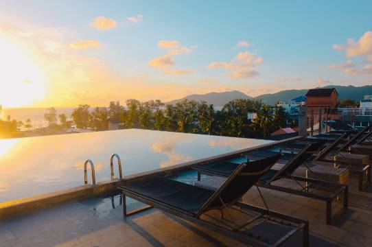 房间性价比很高,关键阳台可以抽烟!抽烟的朋友有福了!芭东海滩附近少有的顶楼泳池,风景不错,前台有个叫潘沛玲的小姐姐会说中文,服务态度特别好,第二天早上怕打不上车去机场,前一晚小姐姐帮忙叫好了车,来之前听说这边很难打车,认识本地人的重要性就出来了。
