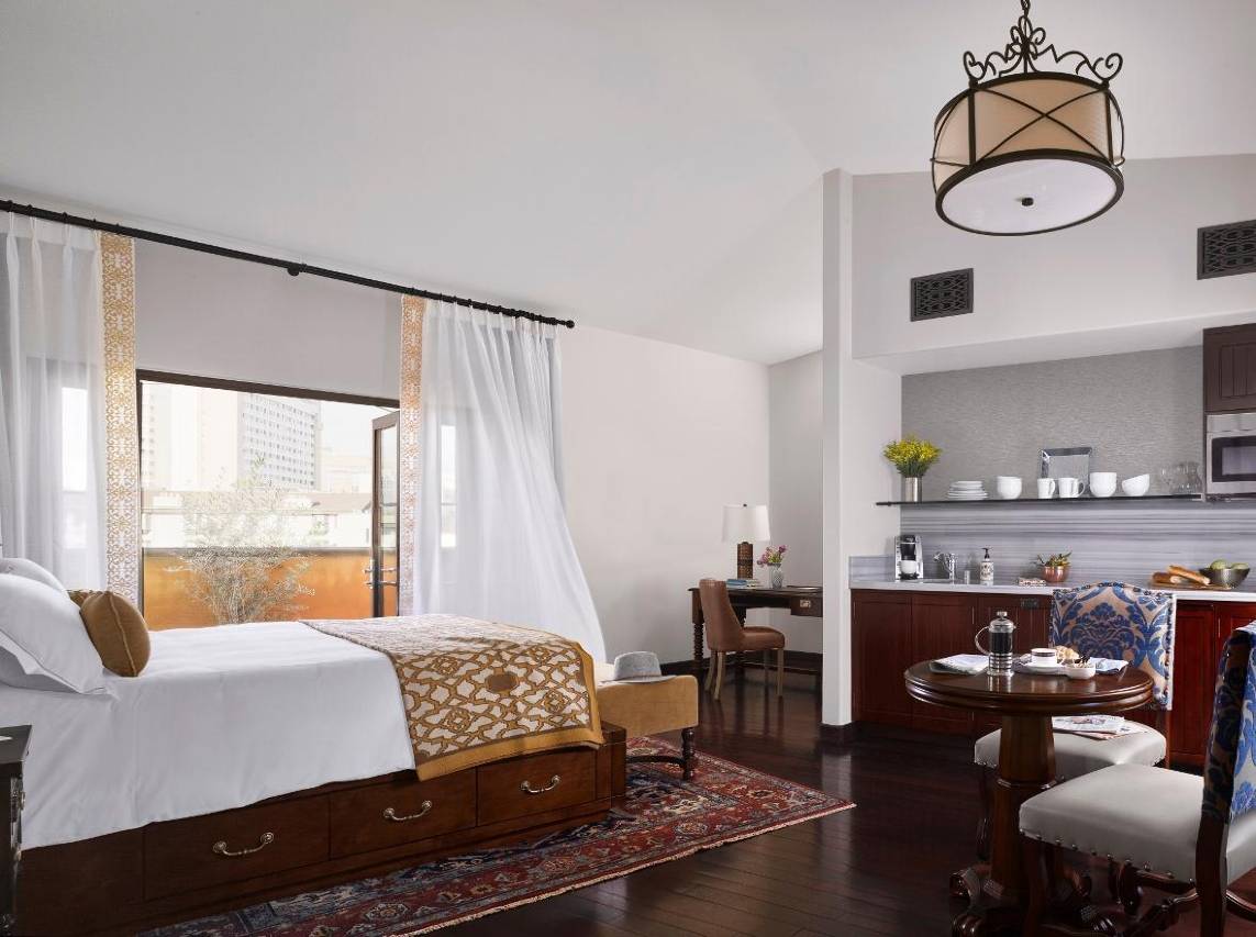 酒店位置很好,周围各种餐饮,还有target和Ralph’s ,whole food等大型购物超市,出行也非常方便,好几路公交站步行可到,四通八达,酒店环境幽静干净,房间装修高档舒适,还有电磁炉和冰箱,洗碗机,可以在酒店做些料理,服务也非常热情周到,晚上6点酒店会关门,只有刷房卡才能进入,非常安全安静。