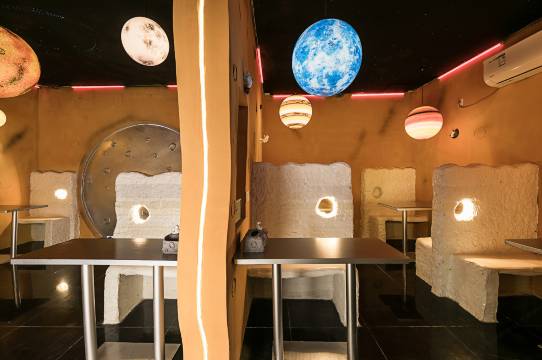 哦对了!一定要夸一下餐厅!就在住的房子旁有一个一层的小房子,前面有宇航员和大月亮!那个大月亮就是餐厅的门!!推侧面就进去了!很奇妙!餐厅里面的装修也很月球!星空顶,月亮灯!我忘记拍照了,但是当时确实惊艳到!