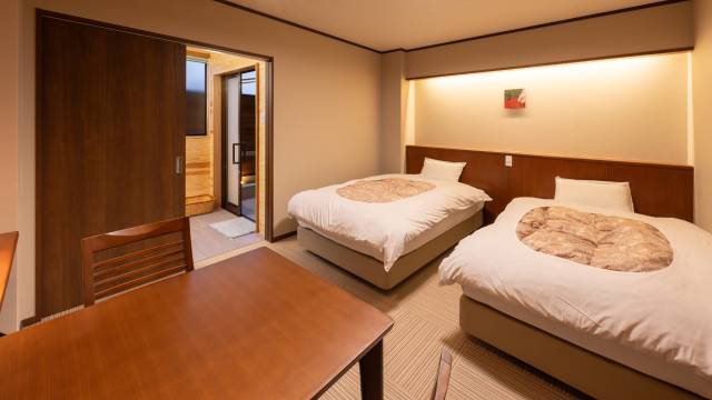 友好的工作人员值得特别一提。前台工作人员毫不犹豫地安排了翻译,并耐心解答了我们的问题。送来怀石料理的姑娘们也很棒。她们上菜速度很快,并用简单的日语(我懂一点日语)解释了每道菜的种类和食用顺序。酒店员工非常热情友好。