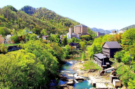酒店位置非常好,定山溪的中心,去定山溪神社的雪灯路很方便,早上去看二见桥也挺近