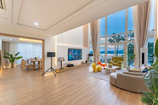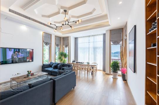 非常好的体验,房间很大,湖景很美,卫生清洁,浴室多床多,朋友或家人聚会很适合,客厅ktv也很赞,离景点也很近。