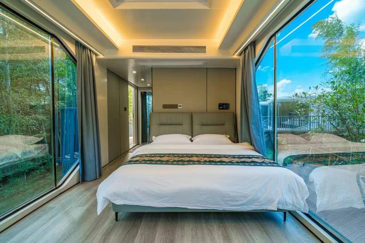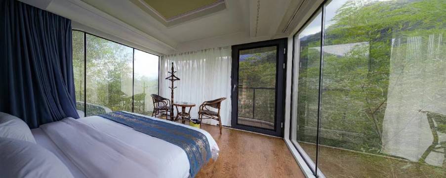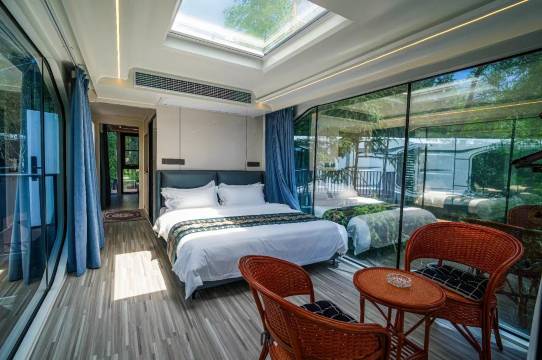房间挺大的,就在景区交通路上,亲子房可以给到3个床的房间,一家人出行挺宽敞的,环境也还可以,晚上山上挺凉快的,都不需要开空调。