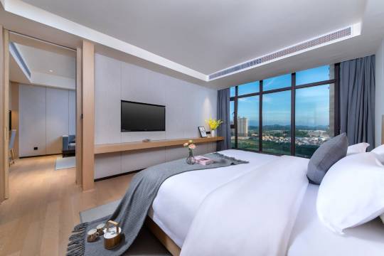 先说赞的地方:服务很不错,无论大堂经理还是客房服务阿姨,有求必应,态度很好!房间智能温馨,特别是套房,设计现代宽敞舒适,提供儿童用品、包括儿童坐便器!还有不同种类枕头可以选择。3楼粤菜酒楼出品很好,环境漂亮价钱适中,住客还可以打折,推荐。自助早餐品类丰富有特色,虾🦐很新鲜!