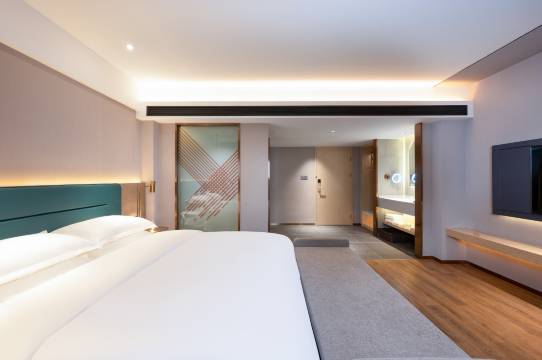 自驾住这家超省心,有免费停车场,房间床垫睡感超棒,卫浴干湿分离热水稳定。工作人员超贴心,周边商超美食都近,逛吃出行一站式解决,体验感拉满。