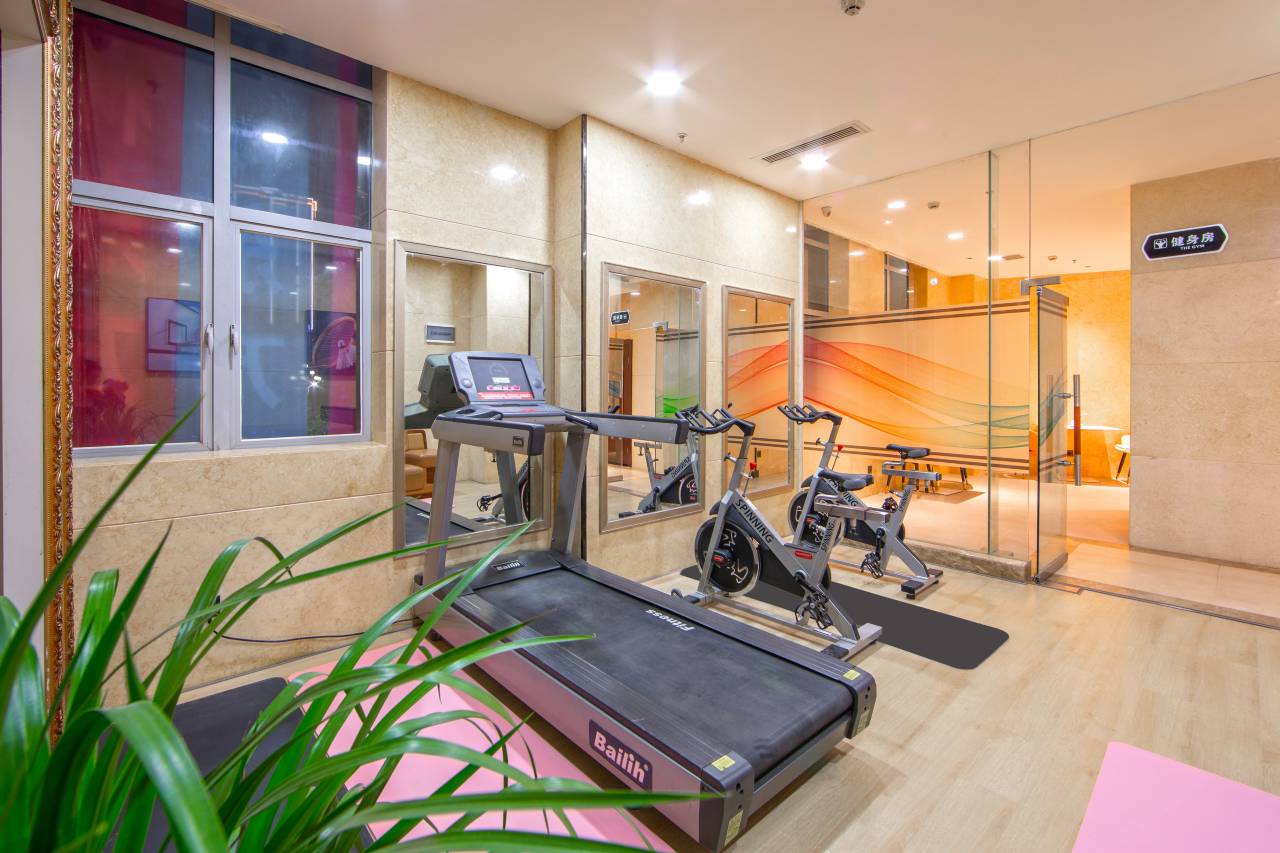客房家具,地板均使用实木定制,没有任何化学污染,所有的装修材料都选用新型绿色环保材料,高品质洗漱套装和香氛沐浴用品,轻柔亲肤自然床品,给您一个舒适静谧的空间,对于喜欢运动的客人,健身房有现代化跑步机和动感单车,供客人试用。