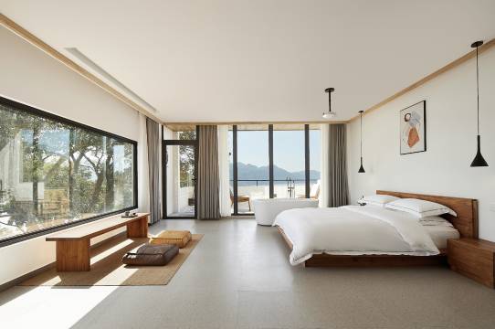 愉村半舍选址在霞浦县牙城镇梅花村所辖的下南洋自然村。这是一个依山傍海的地方,与嵛山岛、烽火岛、南太姥隔海相望。民宿距离牙城镇区步行路程为一铺半(即15里,古代一舍为30里,15里为半舍),该村原有30多户人家,过着半渔半农的生活,故取名愉村半舍。半舍一词也体现民宿主人半舍半得半清欢的文化理念。项目占地面积约9000多平方,由9栋老房子改建而成,分别取名为半舍茶室、愉村餐厅、长乐居、陶陶居、怡然居、自在居、逍遥居、开心居、梅花书院。民宿共20间客房,并配有接待中心、餐厅、书画室、茶室、娱乐空间、桑拿房、烧烤平台、海景草坪等。愉村半舍的设计并没有一味的去仿古,而是保留传统乡村特色的同时,通过合理的规划设计,用新生的手法重构乡村美学和生活体验。我们结合在地文化,在土建和装修上遵循就地取材,以原石、原木、瓦片为主要材料,并按现代生活方式配套完善的功能,满足休闲度假的需求,将一个原本破败的空心村赋予新的生命力。