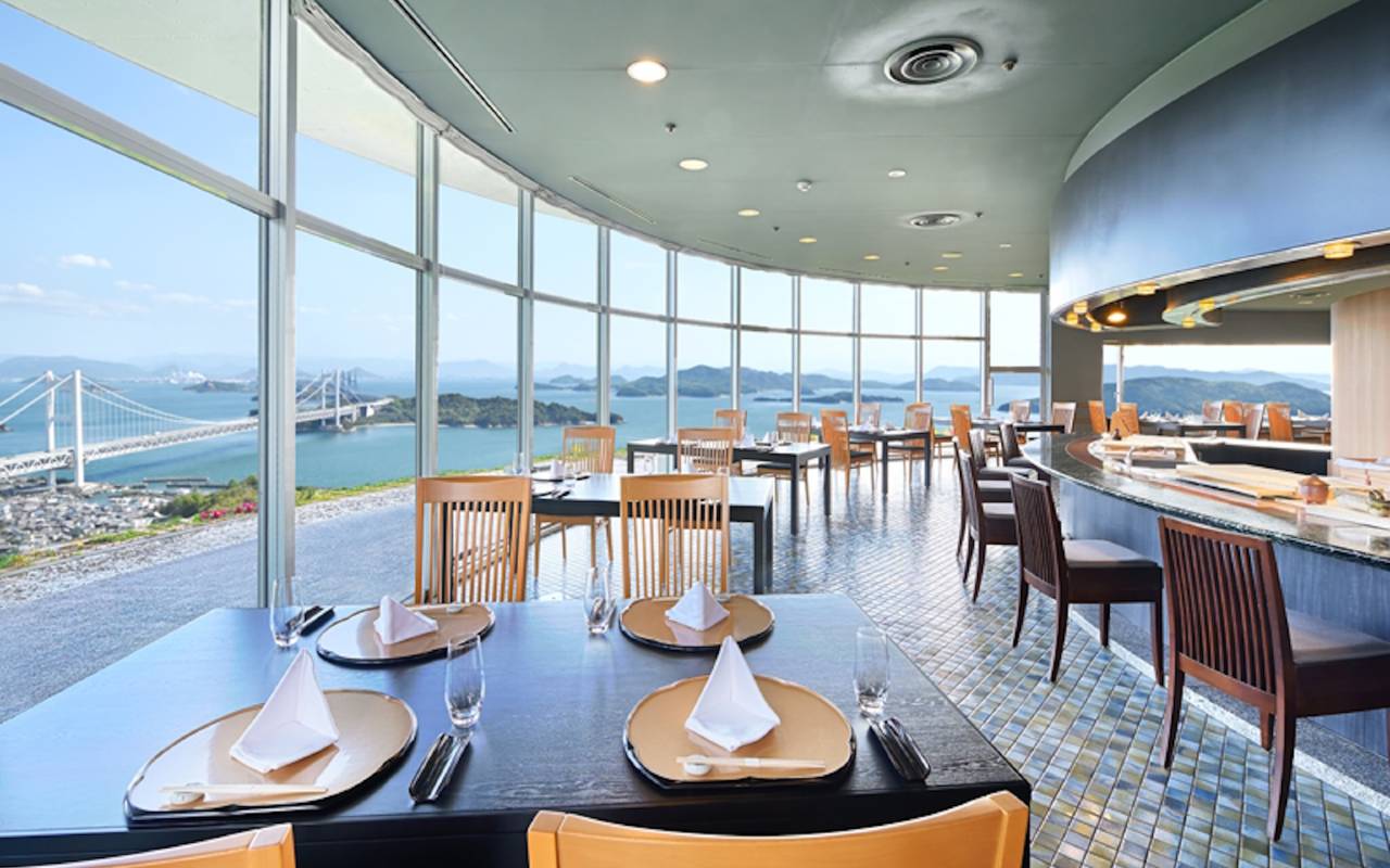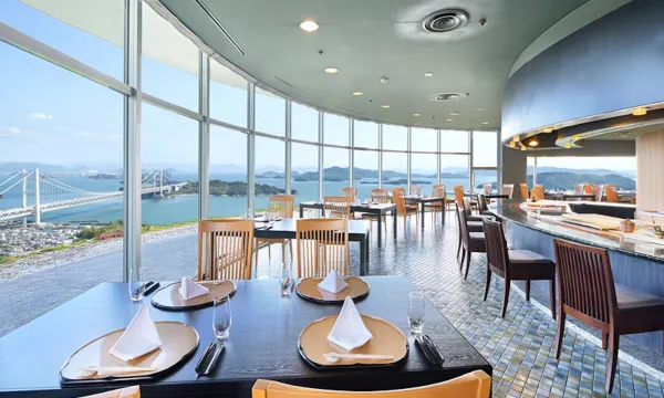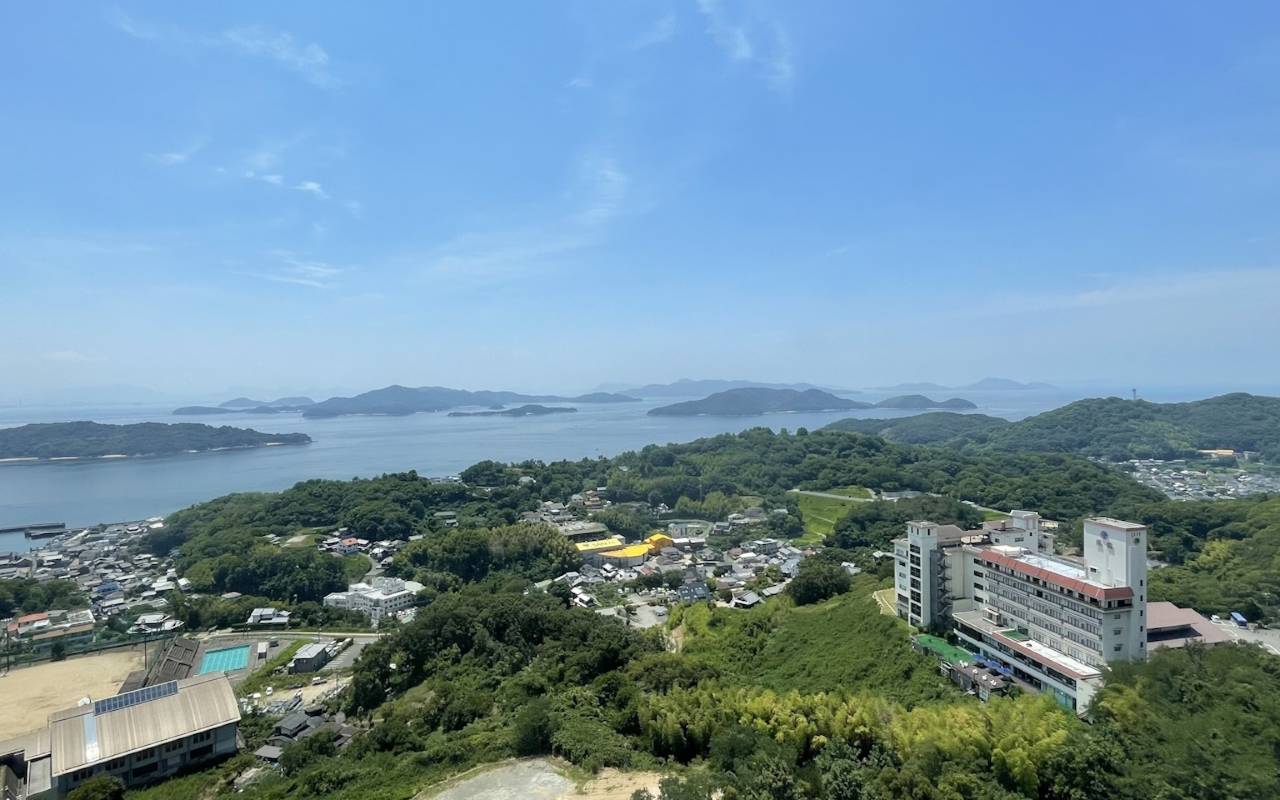 酒店的位置太好了,眺望濑户内海大桥,还能看到日落。晚餐和早餐也很棒。去隔壁鹫羽山公园玩步行五分钟就到了。