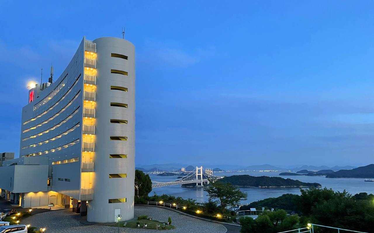 酒店在山上,有非常好的景色,可以俯瞰濑户大桥濑户内海,还看到了很美的落日。