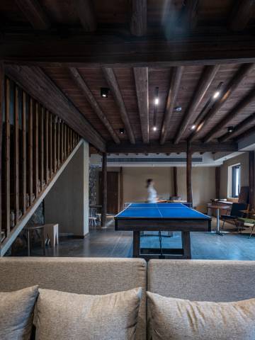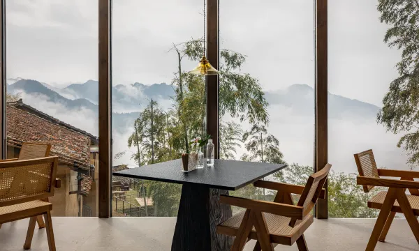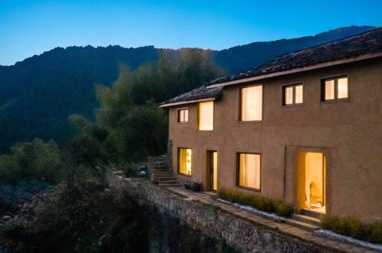 位于海拔800米半山腰,正对群山,观景视线开阔,夜可观星空,一年365天200天都有云海的夯土风格改建悬崖边民宿。