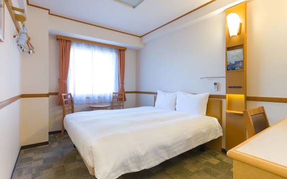 旭川站直行到主道右转直走就能看见东横的标志,六七分钟的距离,酒店干净,自助入住很简单,早餐楼下自取到房间吃,房间面积还算宽敞,推荐
