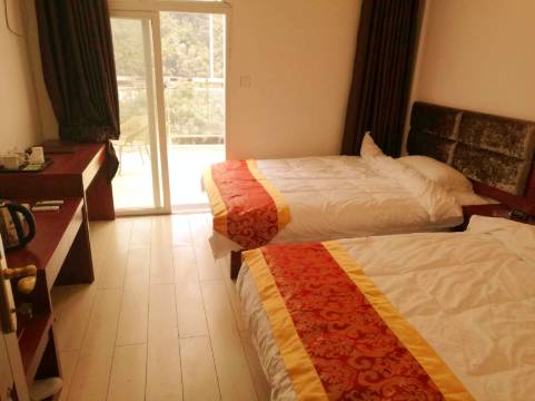 住的带阳台的山景房,大阳台太舒服了,一眼望出去,满眼的绿水青山,空气特别好。五一也没怎么涨价。冲着这个阳台,这个价位,值了。老板娘非常热情。