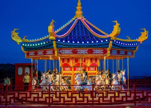酒店就在云上草原山上,游玩非常方便。这个乐园分三部分,其中仙侠镇特别适合晚上游玩,心跳和高山草原部分白天进行就行。按行程一天也足够,毕竟高山草原主要是3个滑草和卡丁车游玩,心跳就玩那些刺激的项目。
