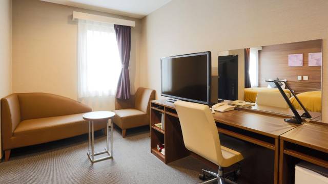 豪华双人间没有体验出豪华度,可能和之前入住的酒店比较以后感受度有对比。靠近川崎站,酒店门口有台阶,对老人和行李搬运不是很友好