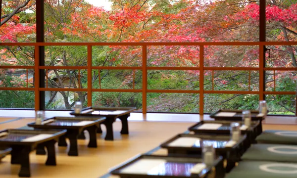 是明治天皇呆过的旅馆,位置方便,京都站赶73路到渡月桥下走几分钟。临近天龙寺,嵯峨竹林。且就在嵯峨野漂流的终点上岸处不远。早餐很有仪式感,四川胃虽然不太适应口味,但体验了把京都贵族生活的精致。正门旁嵯峨罗汉像处有家汤豆腐,环境精致典雅。