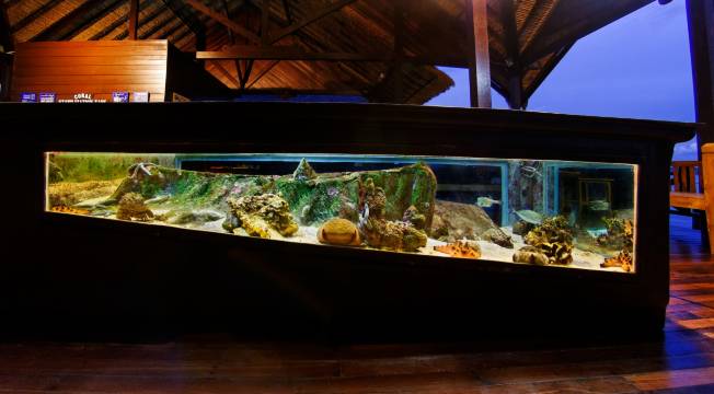 无论您想要健康满满的新鲜食材或简单田园的家常食品,酒店都能满足您的饕餮期望。您可以前往酒店餐厅享用三餐,也可以在舒适惬意的客房中悠享一顿私人餐食。海鲜餐厅(Alu Alu Seafood)建于水上,位于度假村宁静的一隅。伴着悠悠的海风和轻拍的浪花,您可在此细细品尝上佳的中式海鲜。所有的食材均源自酒店私有的有机渔场,使您放心享用新鲜海产。除此之外,酒店还有提供西式餐点的麦可可餐厅(Macac Restaurant),商务会客或悠闲下午茶皆宜的酒廊(Latitude Lounge)。水疗中心(Solace Spa)完美地结合了亚洲风情及西式概念,提供诸多按摩、美容以及理疗服务,并设有温泉套房和漩涡浴缸。客人入住期间还可以参加潜水、森林远足等各项活动。