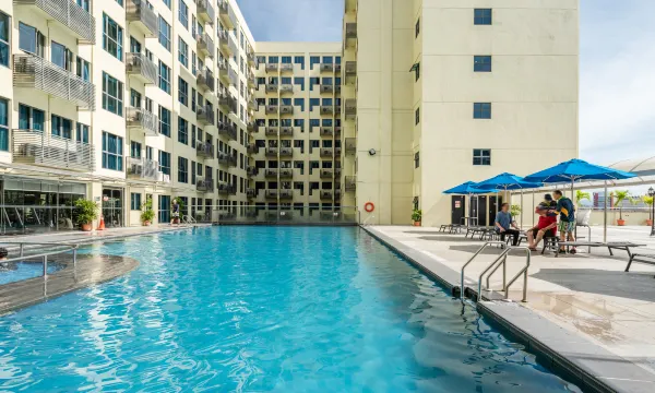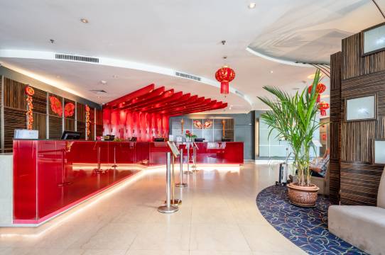 酒店装潢豪华典雅,高档客房均配有电视、迷你吧、独立的浴室和高速的网络设施。客人可以在健身房锻炼,可以在水疗区内放松地享受按摩或只是简单地躺在桑拿房内舒缓身心,也可以在室外游泳池内畅游。酒店同时还设有多个餐厅以满足客人不同的需求。斯帕克斯现场(Sparks Live)提供放松身心的乐队表演和派对服务;在金露餐厅(Golden Dew Bistro)客人可享用来自亚洲与西方的特色美食;热带雨林中庭(Rainforest Atrium)提供鸡尾酒,可以满足您个性化的派对需求;位于4楼的池畔吧(Pool Bar)提供异国情调的鸡尾酒和小吃,您可在此尽赏日落美景及南中国海景致。