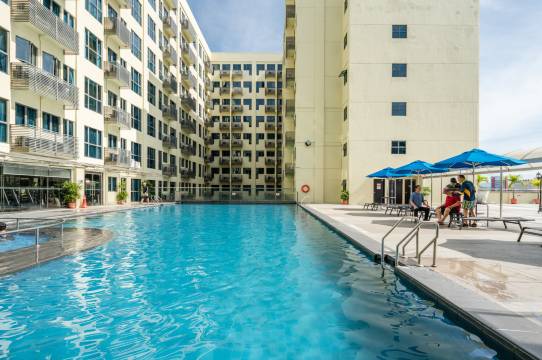 地点分方便,去哪都很靠近,房间也很干净,价钱又便宜,性价比很高!超级推荐。还有游泳池,健身房那些!强推!