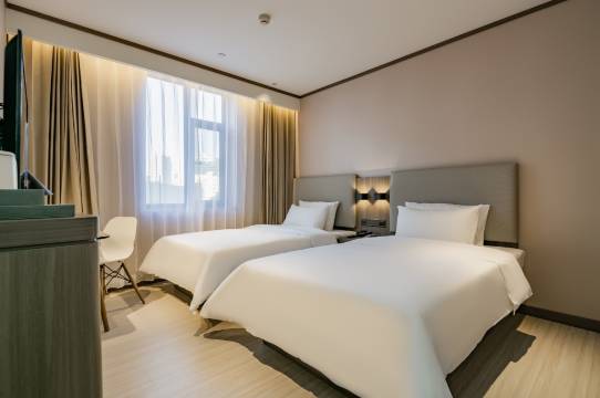 这次入住汉庭3.5版本门店太惊喜了!房间干净整洁无异味,现代简约设计很显质感,金可儿定制床垫软硬适中,隔音效果超棒,一夜好眠。华掌柜自助入住30秒搞定,机器人送物便捷又贴心,还有免费洗烘一体机超实用。地理位置优越,周边交通餐饮都方便,早餐种类丰富。服务热情周到,细节处尽显用心,性价比拉满,不管出差还是旅行都超合适,已经列入常选清单,下次一定再来!