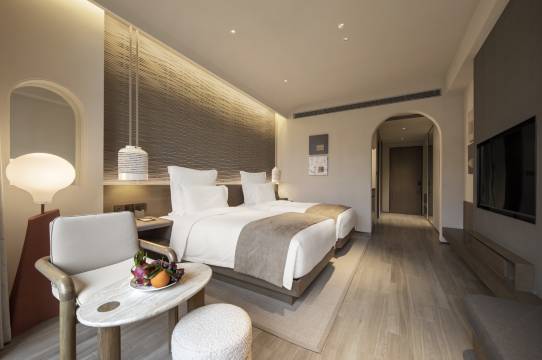酒店拥有诸多间野奢客房,客房内现代装饰营造出舒适氛围和轻松宜人的优雅气息,每一间房都配有可私享壮阔景观的独立阳台,供您欣赏宁静的小镇美景,尽享惬意住宿。