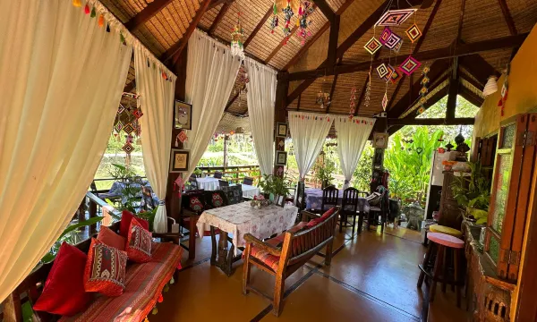 这家度假村位置绝佳,距离拜县(Pai)熙攘的中心区域和主要景点只有短短几英里。平房错落有致地分布在园景梯田上,被盛开的树木和鱼塘隔开。度假村坐落在拜河谷的稻田之中,两侧都可以欣赏到连绵的山脉。这里的环境宁静祥和——树蛙、野鸟、壁虎以及偶尔传来的农场动物的叫声,共同奏响了一曲大自然的交响乐。新老板Vanda是一位非常棒的主人,她竭尽全力确保您的住宿舒适,并为您提供所需信息,让您充分享受拜县的众多景点。2023年1月,度假村安装了全新的弹簧床垫,并将网络服务和无线网络技术升级到泰国顶级的水平。度假村内全区域提供免费高速无线网络服务,这使得池塘露台成为数字游民和商务旅行者的完美共享工作空间。早餐选择(已包含在房费中)包括燕麦片配酸奶或蜂蜜、法式吐司或全套美式早餐。每份早餐都配有当地农场新鲜的热带水果。最后,咖啡选择包括美式咖啡、意式浓缩咖啡、卡布奇诺、拿铁,所有咖啡都使用来自泰国北部的新鲜研磨咖啡豆制作。我们已经在泰国生活和旅行了8年,这家度假村完全符合我们的所有期待!我们一定会经常回来的!