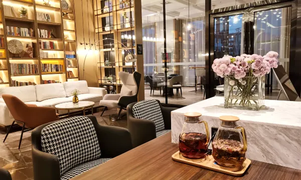 酒店设计以阅读和属地摄影锁定周边,超大阅读会友书吧(竹居), 7*24小时阅读空间,带给您一片心灵的栖息地。