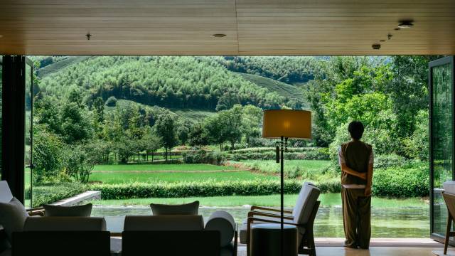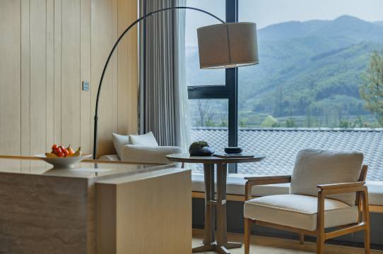 在自然万象中探究现代度假哲学,将奢华定义为回归自然之美。姚良村口,古枫树下,稻花香中,酒店所有建筑均置身于稻田与山谷之间,令居者为稻田所环抱,远山、竹海、松林、梅溪、稻田,四季之间,俯仰皆景,构成一派纯粹的田园风光。