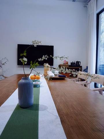 房间非常干净 空间很大 落地玻璃可以看到外面的小河 四周环境很舒服 早上的早餐很好吃 种类很多 老板娘很热情 给我们拿了自己做的小菜 柿子吃