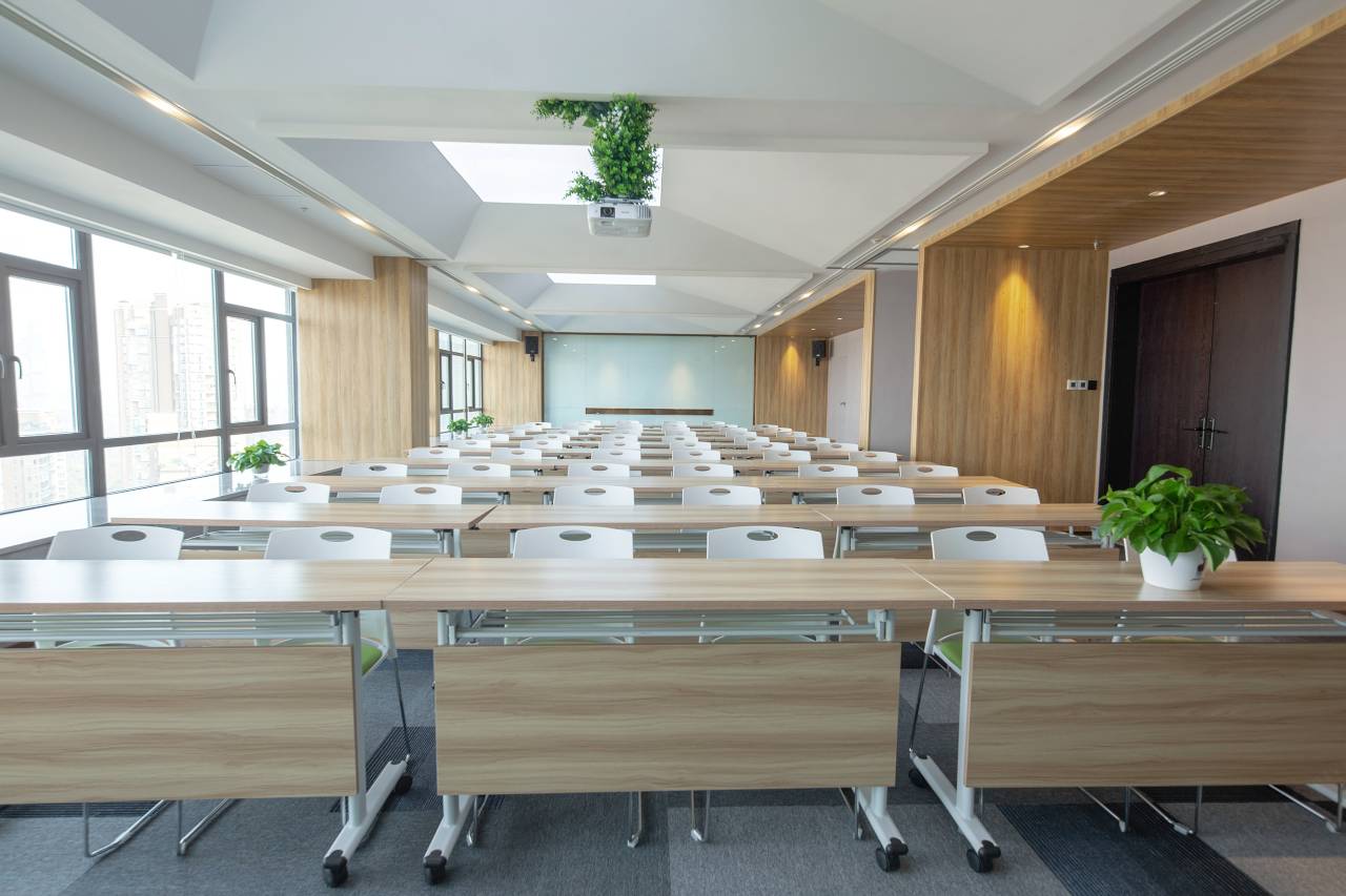 会议室设备齐全,明暗由您随心掌控,可进行多种组合布置,也可坐室内拓展项目场地使用。