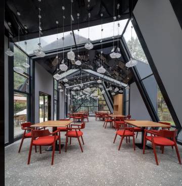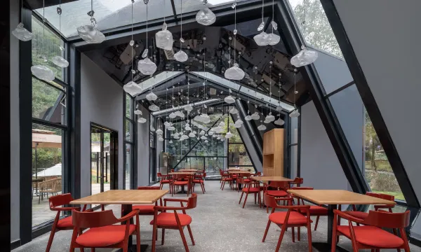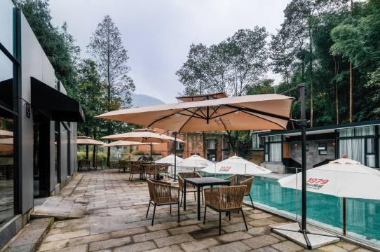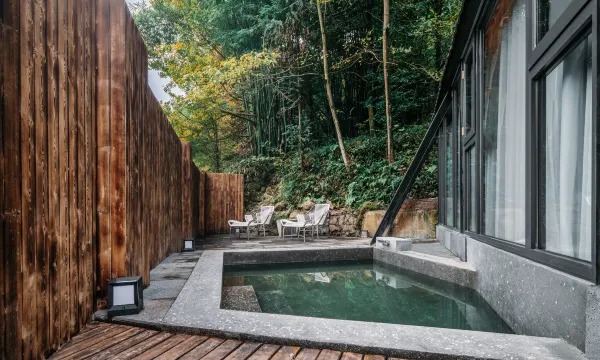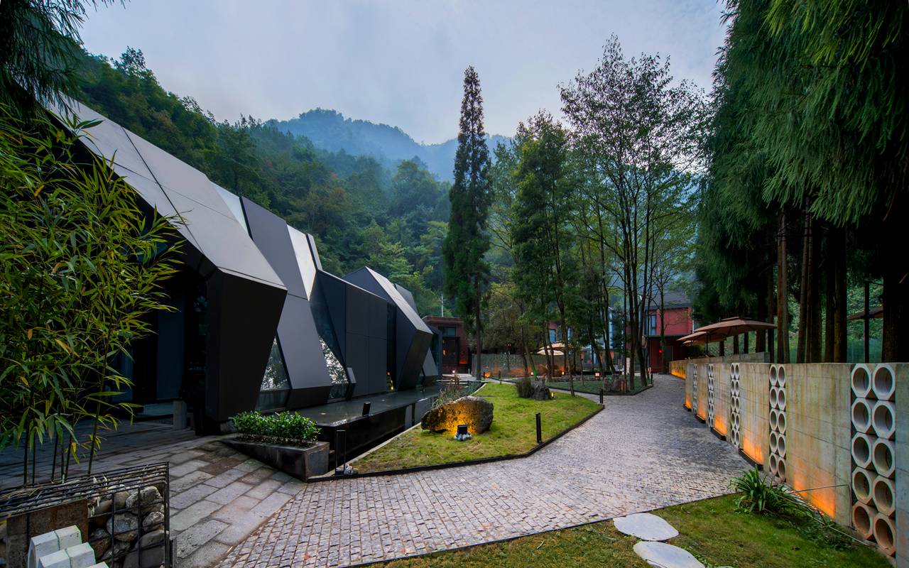 酒店坐落于中国道家发源地之一雾山,是由改革开放初期原6569工厂和原两河口电站改建的,整体融合了山林的幽静、旧年代的质感和现代高阶设计,置身其中,仿佛能听到岁月的呓语。 酒店共有10种共多间特色森林小屋,配有发电厂改建的工业风清吧 ,超有设计感的餐厅,以及超大的户外泳池和木屋入户私汤。 依山傍水,以星为被,住进森林小屋,泡一泡汤池,享受悠闲假期。 设计感十足的墨绿色吊灯和窗外的森林辉映,超级出片,超大户外游泳池,体验在山林和星空下畅游的感觉,酒店提供免费停车场,还可以带上宠物来撒欢哦,酒店还配有咖啡厅、棋牌室、河边茶坊、清吧。是个和亲朋好友度假的胜地。 宛如置身小瑞士的小木屋设计,镶嵌在郁郁葱葱之中 房间都有超大落地窗,户外是潺潺小溪和古树林立。独立入户和户外野趣私汤,私密性超强,房间装修超有设计感,配色低调高级,切割感造型的独立餐厅,绝美的氛围吊灯,四面落地窗和全玻璃屋顶,和亲友恋人在在山林小屋中享受一顿美食,干杯举箸,相看莞尔,惬意十足。 1980年代发电厂改造的工业风清吧,里面保留了具有年代感的发电机作为装饰,配上现代化的吧台,颇有赛博朋克之感。品一杯酒,在夜幕降临之时,聆听年代的故事。