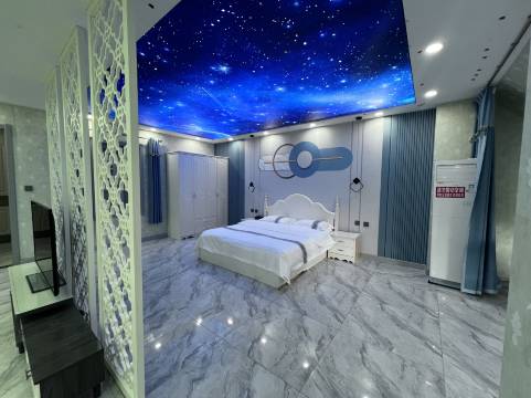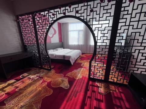 宾馆位于万象丽景小区西侧,属现代装修风格,内设标准间、商务大床房、商务双床房、商务套房、圆床房、婚嫁主题房。