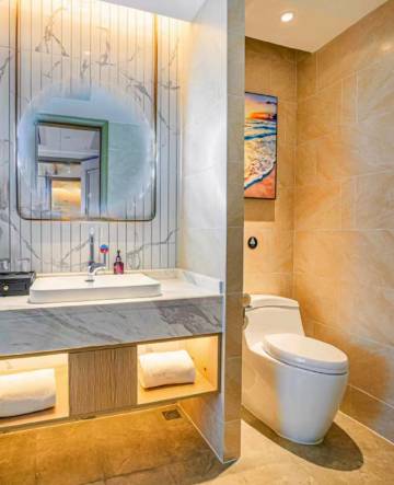 热水充足,洗漱用品齐全,毛巾浴巾干净柔软,使用感很好。空调温度调节精准,运行安静不吵人;窗帘遮光效果优秀,白天也能拥有安静的休息环境。房间内灯光柔和,插座充足,充电方便,网络稳定,日常使用完全没问题。服务态度好