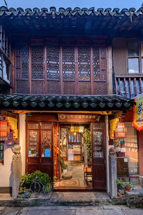 客栈位于上海市青浦区朱家角古镇景区内,距离汽车站只需步行约10几分钟,可坐沪朱线直达人民广场,步行就能到达外滩等地方。